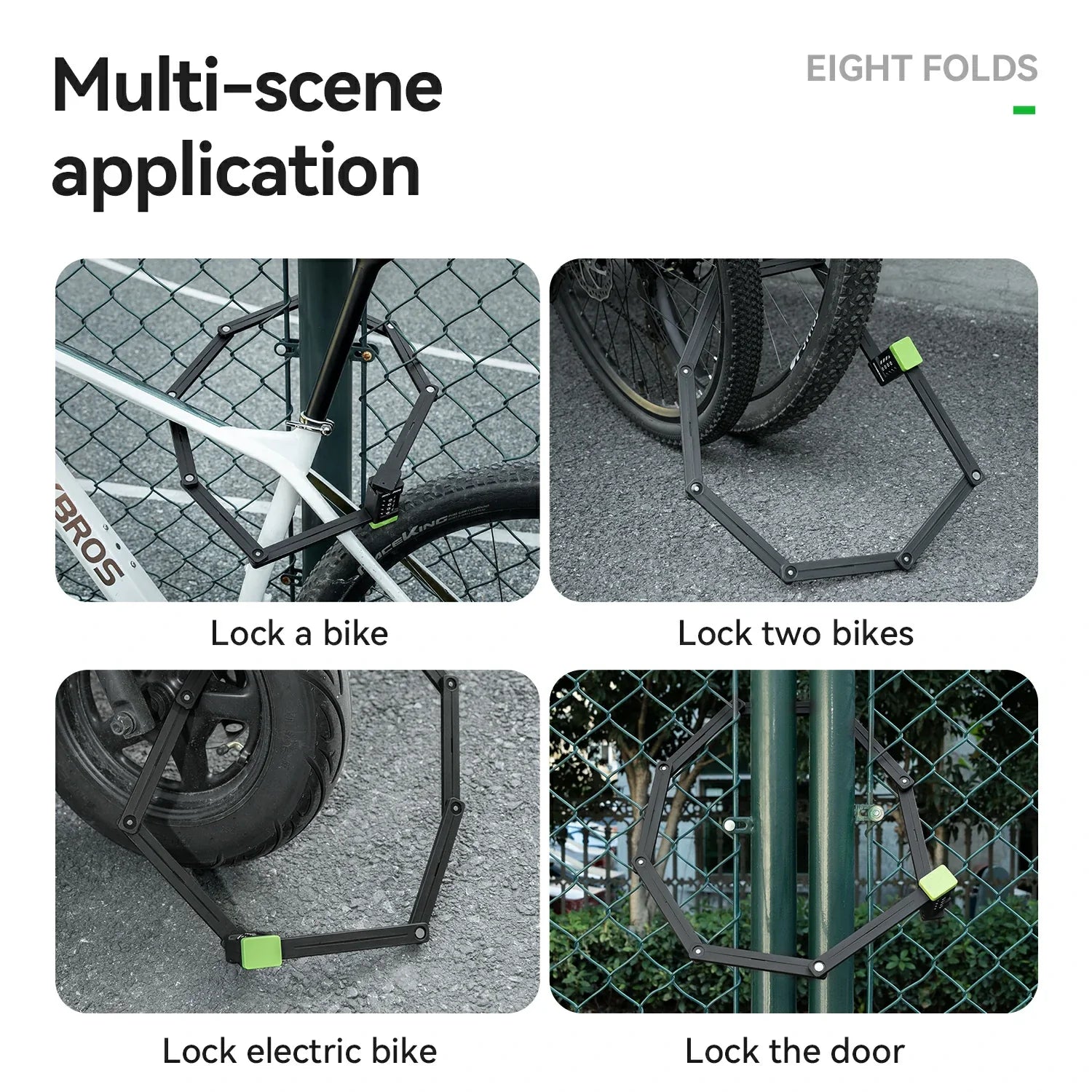 | Application | Locks bikes, e-bikes, motorcycles, doors |